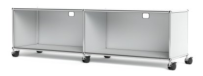 USM Haller TV-/HiFi-Lowboard, individualisierbar, USM mattsilber, Offen, Mit Kabeldurchlass oben mittig