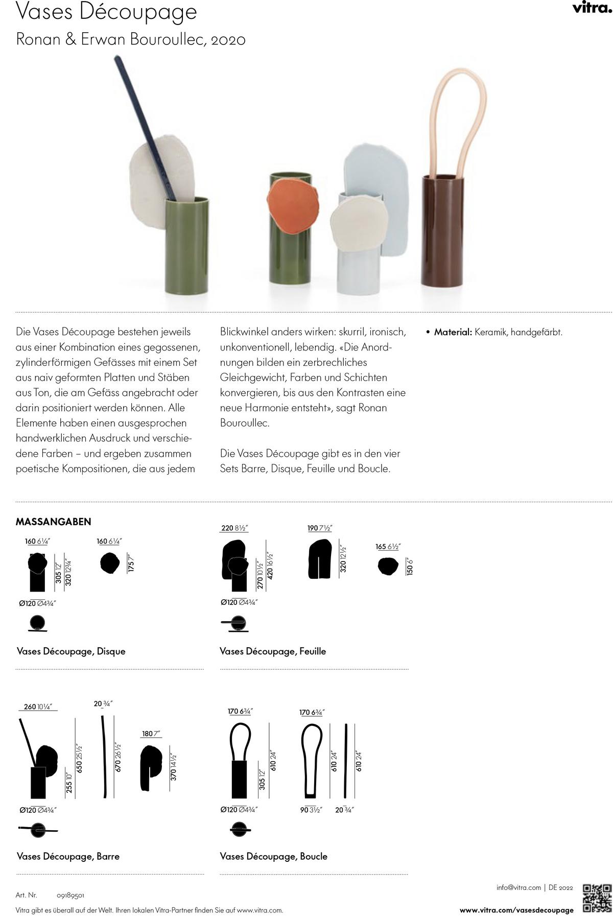Die Découpage Vasen von Vitra sorgen für eine individuelle Atmosphäre in jedem Interieur: Ronan & Erwan Bouroullec geben den Vitra Vasen mit ihren zylindrischen Gefäßen und den signifikant geformten Platten und Stäben aus Ton ihren typisch unkonventionellen, verspielten und ausdrucksstarken Charakter.