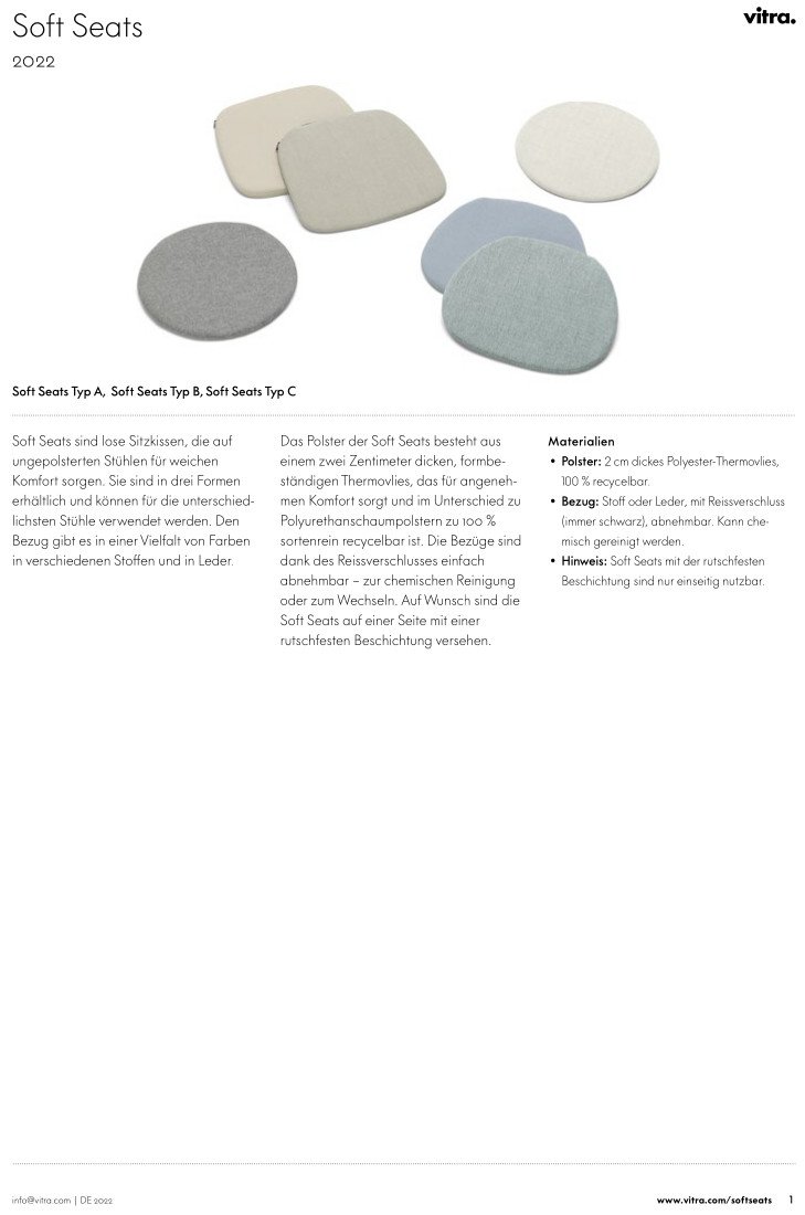 Die Soft Seats von Vitra bieten als lose Kissen besonders weichen, gemütlichen Komfort auf unterschiedlichsten Vitra Stühlen. Ihre rutschfeste Beschichtung auf der Unterseite verhindert ein Weggleiten. Bei der Farb- und Materialvielfalt bleiben keine Wünsche offen.