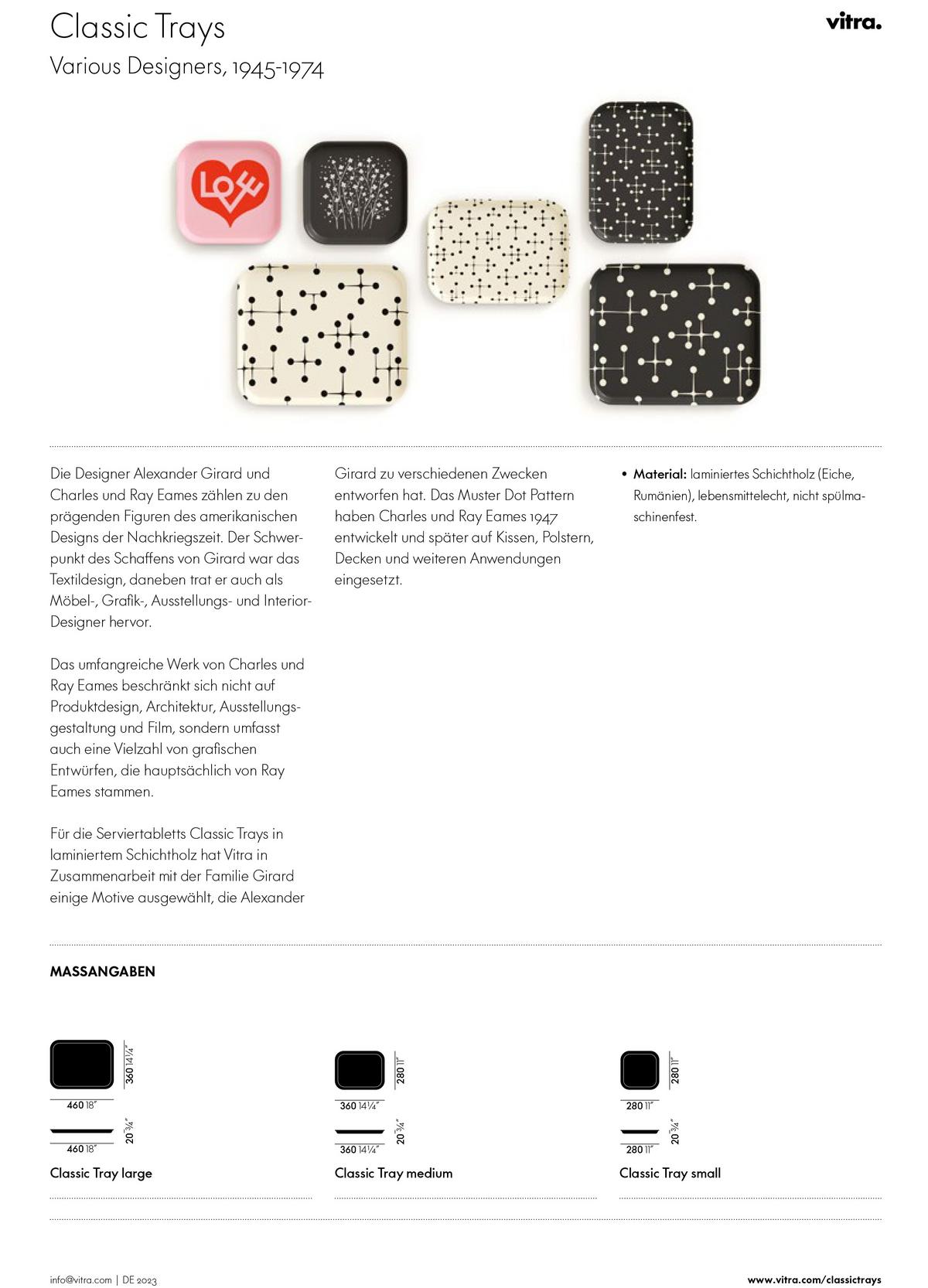 | Ausführungen | In zwei Größen in je zwei Motivausführungen lieferbar Auch als Girard Classic Trays erhältlich |