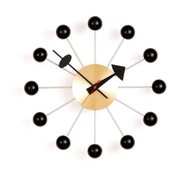 Um 1950 macht sich die Entwicklung der Konsumgesellschaft bemerkbar: Gebrauchsgegenstände werden nicht mehr ausschließlich nach funktionalen Kriterien betrachtet - ebenso avanciert ihre Ästhetik zu einem wichtigen Argument des Verkaufs. Der wirtschaftliche Aufschwung ermöglicht die Verbreitung von Design in amerikanischen Haushalten, sei es in Form von Mobiliar, Gebrauchsgegenständen oder Accessoires. In diesem Kontext stehen George Nelsons Entwürfe von Alltagsobjekten wie Leuchten, Uhren und anderen Wohnaccessoires. Die Serie Wallclocks, zu der neben der Vitra Ball Clock auch die berühmte Sunflower Clock gehört, steht exemplarisch für eine immense Lust an Gestaltung, die aus Gebrauchsgegenständen viel mehr macht, als man von ihnen erwartet. Vitra nahm die Wallclocks ins Sortiment auf und lancierte 2013 im Rahmen der Black Collection auch neue Varianten.