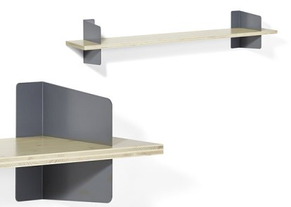 | Ausführungen | Variante 1: 2 kleine Bodenträger und 1 Regalboden in 3 erhältlichen Längen Variante 2: 2 große Bodenträger und 2 Regalböden in 3 erhältlichen Längen Variante 3: 1 kleiner und 2 große Bodenträger und 2 Regalböden in unterschiedlicher Länge (100 und 160 cm) Regalböden in verschiedenen Holzarten und Bodenträger in unterschiedlichen Farben erhältlich. |