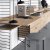 Bodenregal mit Schreibtisch, Fachböden Eiche, Seitenwände weiß