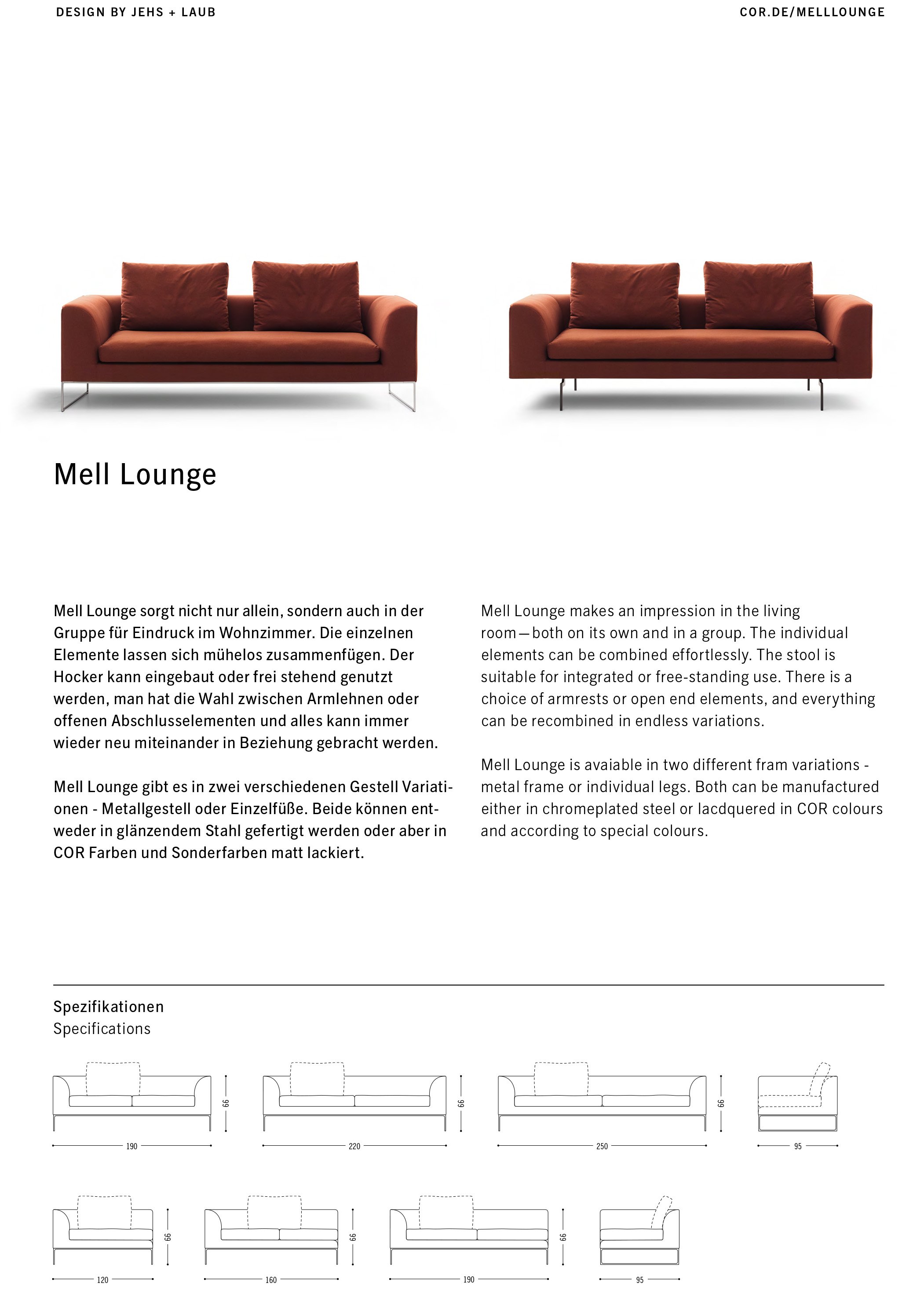 Das Mell Lounge Sofa, entworfen vom Designer-Duo Jehs + Laub, ist ein modulares Sofa, das zeitlosen Chic mit purer Gemütlichkeit vereint. Durch sein filigranes Gestell wirkt der großzügige Korpus beinahe schwebend und verleiht dem Raum eine außergewöhnliche Leichtigkeit. Es lädt mit seiner tiefen Polsterung perfekt zum ausgiebigen und gemütlichen Entspannen ein.
