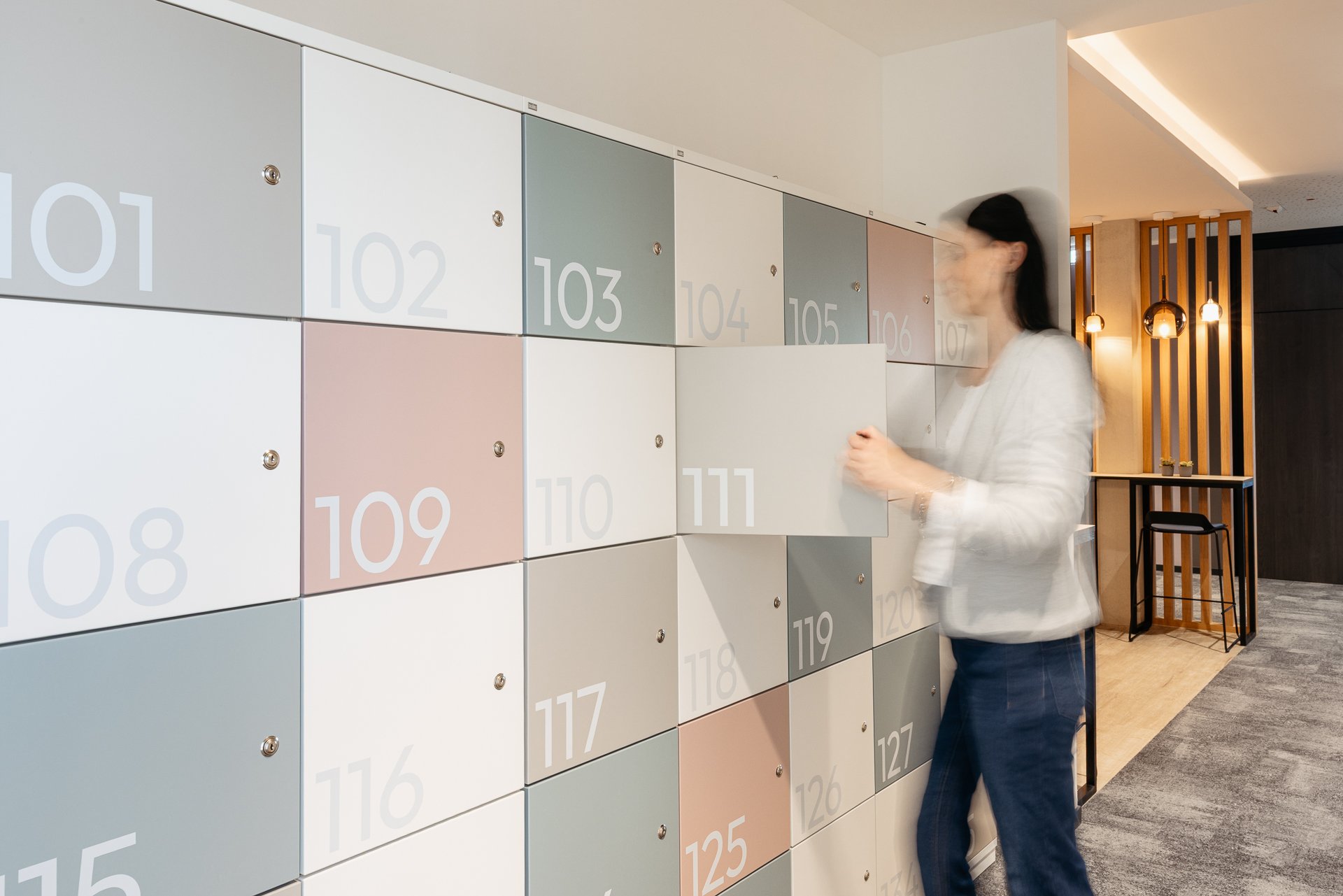 Eine besondere Herausforderung lag in der intensiven Einbindung der Mitarbeitenden, um ihre gewohnten Arbeitsweisen behutsam in die zukunftsorientierte, offenere Struktur zu überführen. Nachhaltigkeit und Langlebigkeit standen dabei im Mittelpunkt: Die Möblierung ist zeitlos und für eine langfristige Nutzung ausgelegt. Weitere Anforderungen ergaben sich aus einer barrierearmen Gestaltung, der flexiblen Nutzung für unterschiedliche Arbeitsformen sowie einer effizienten Flächennutzung. Die großzügigen Lagerflächen sollten bewusst reduziert werden, um Platz für flexiblere Arbeitsstrukturen und die Anforderungen der fortschreitenden Digitalisierung zu schaffen.