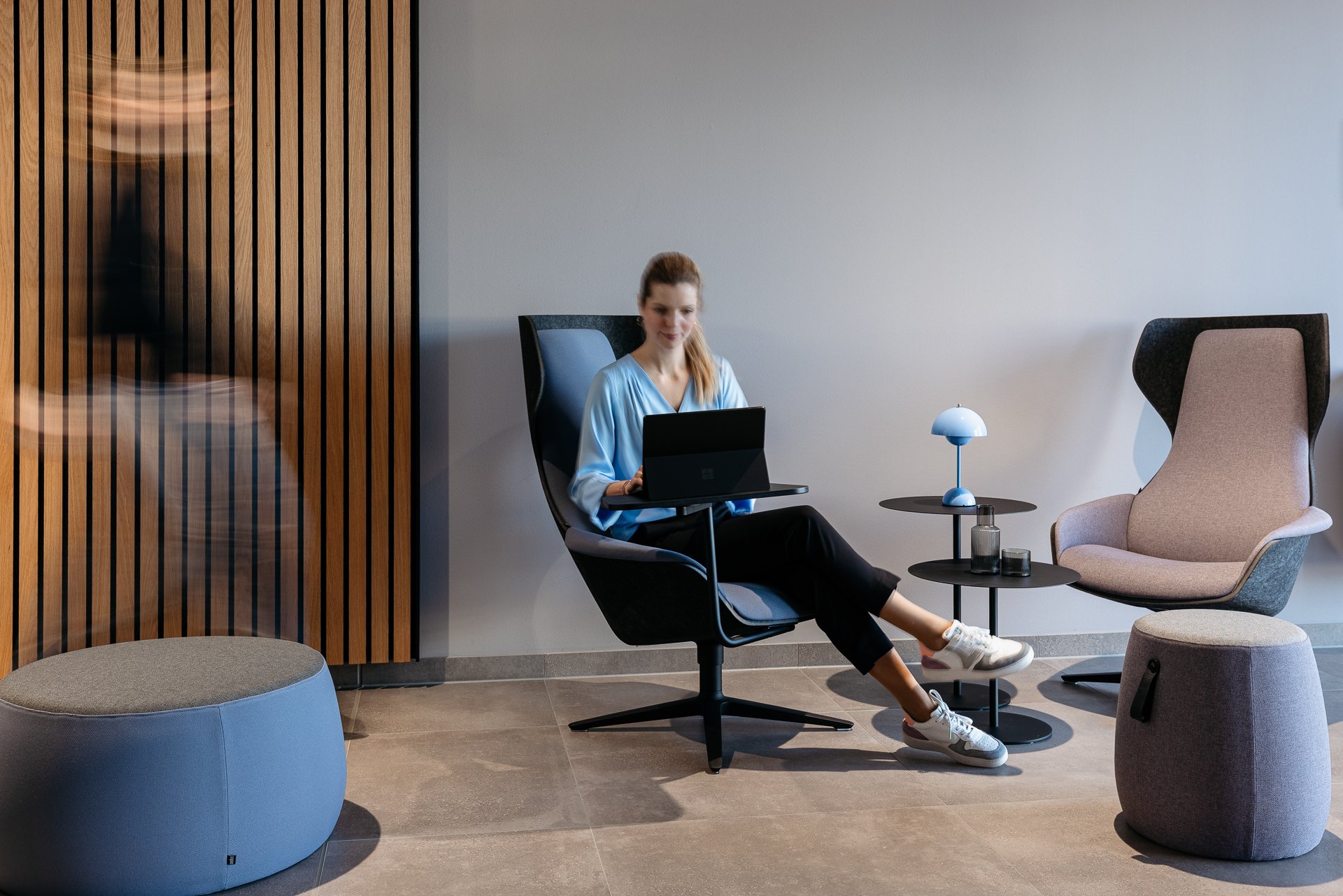 Die Arbeitsbereiche wurden mit hochwertigen, langlebigen Möbeln ausgestattet, die sowohl ergonomischen Anforderungen gerecht werden als auch gestalterisch überzeugen.
