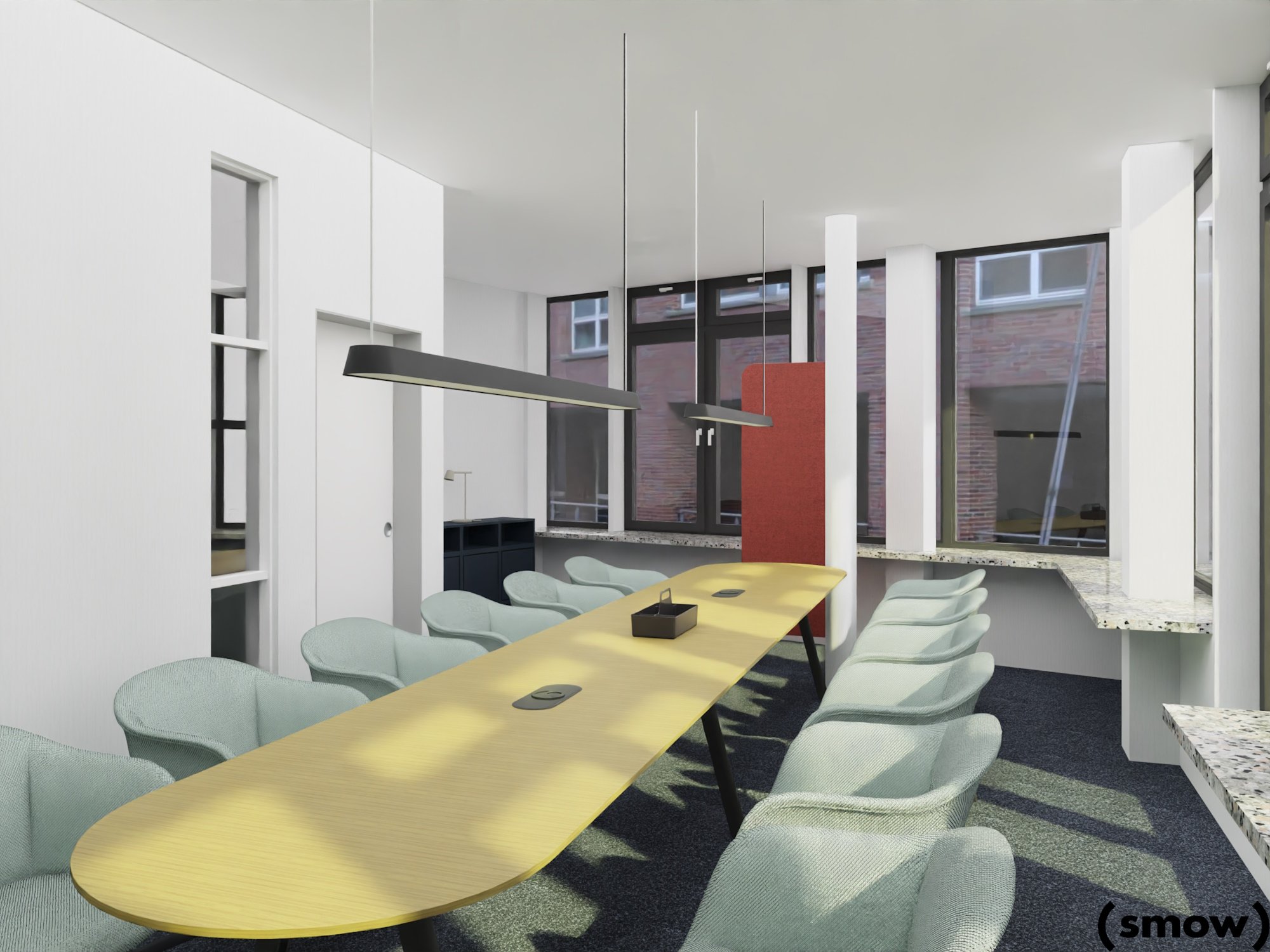 Das Konzept von smow Hamburg legt besonderen Wert auf eine freundliche und frische Farbgestaltung, die eine einladende Atmosphäre schafft und mit durchdachten Akzenten für das Wohlbefinden der Mitarbeitenden sorgt. Auch die Auswahl des Mobiliars folgte einem durchdachten, harmonischen Konzept. So entstand ein einheitliches Erscheinungsbild, das trotz verschiedener Hersteller in sich abgestimmt ist und ein konsistentes und ansprechendes Gesamtbild bietet.