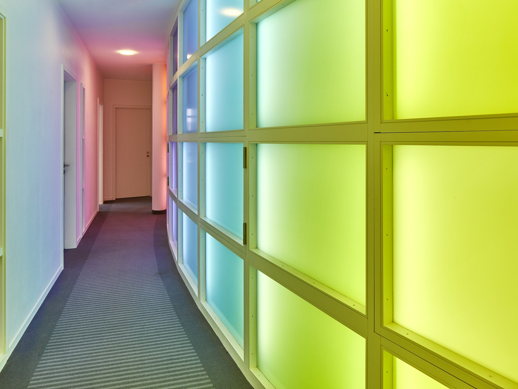 Das Projekt wurde in mehreren Bauabschnitten realisiert, da die Anmietung der Büroflächen aufgrund des stetigen Wachstums schrittweise erfolgte. Nachdem zunächst das 6. Obergeschoss eingerichtet wurde, kam nachträglich auch das 2. Obergeschoss hinzu. Aufgrund des engen Zeitrahmens wurde entschieden, so wenig wie möglich in die vorhandene Architektur einzugreifen. Außerdem musste der bestehende Teppichboden übernommen werden, obwohl er nicht exakt den ästhetischen Vorstellungen entsprach. Dies erforderte eine flexible Möblierung, die sich den Gegebenheiten anpasst und bei Bedarf unkompliziert umgestellt werden kann.