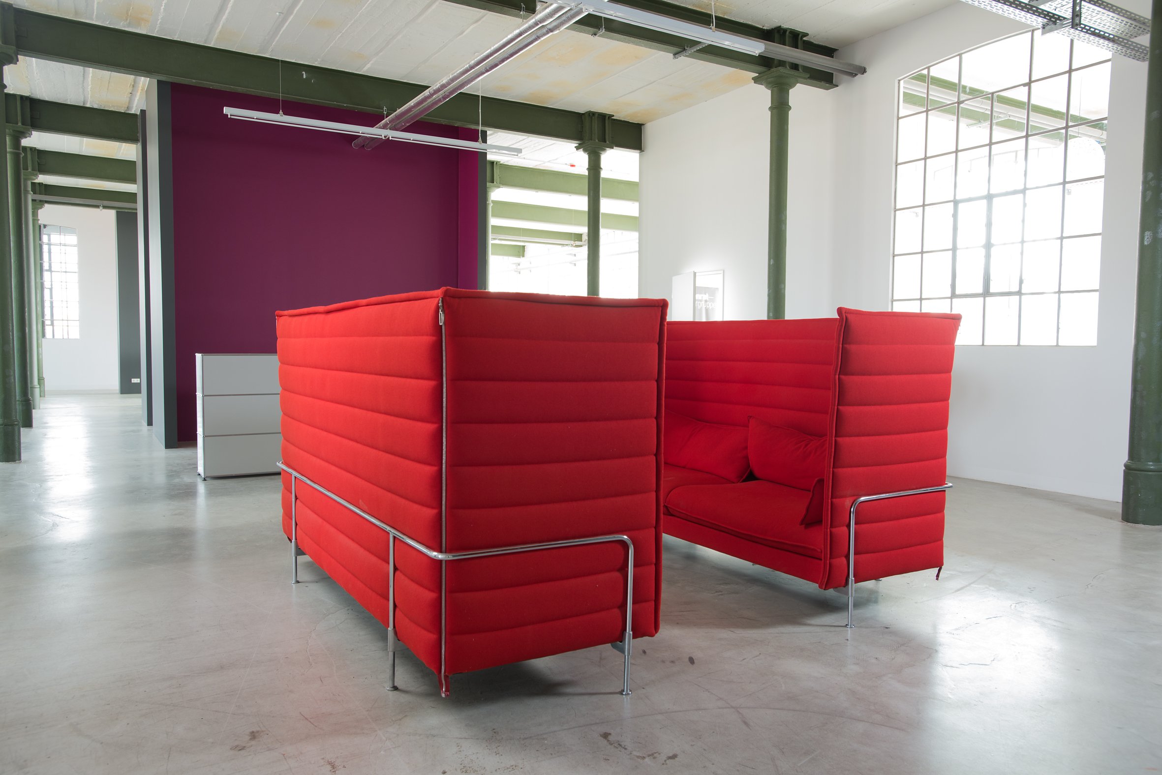 Individuell höhenverstellbare Arbeitsplätze in Verbindung mit akustisch wirksamen Stoffscreens ermöglichen ein angenehmes Arbeiten in der offen gehaltenen Bürostruktur. Sämtliche Tische sind untereinander frei kombinierbar und damit auch für wechselnde Teamarbeitsplätze ausgelegt. Kunden, Gäste und Besucher können im Empfangsbereich auf einem Sofa Platz nehmen, das akustisch entkoppelt ist. Das Sofa dient darüber hinaus informellen Meetings.