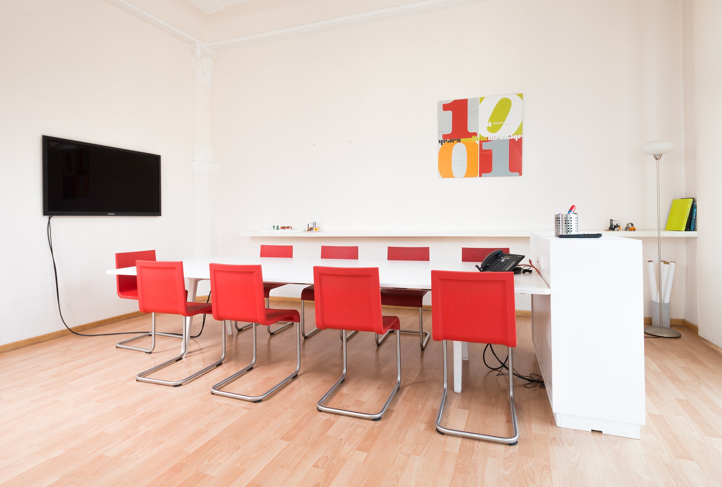 Bei der Erweiterung der Räume der Web-Agentur Mellowmessage hat smow Leipzig mit Designklassikern sowie modernen Designs gearbeitet. Die neugestaltete Bürofläche in dem restaurierten Altbau ist durch freundliche wie funktionale Arbeits- und Besprechungsräume gekennzeichnet. In der Einrichtung spiegelt sich eine junge Handschrift wider, die sowohl zum Standort, der Leipziger Südvorstadt, als auch dem Tätigkeitsfeld passt: In einer Agentur darf sich die Kreativität ruhig auch im Mobiliar ausdrücken.