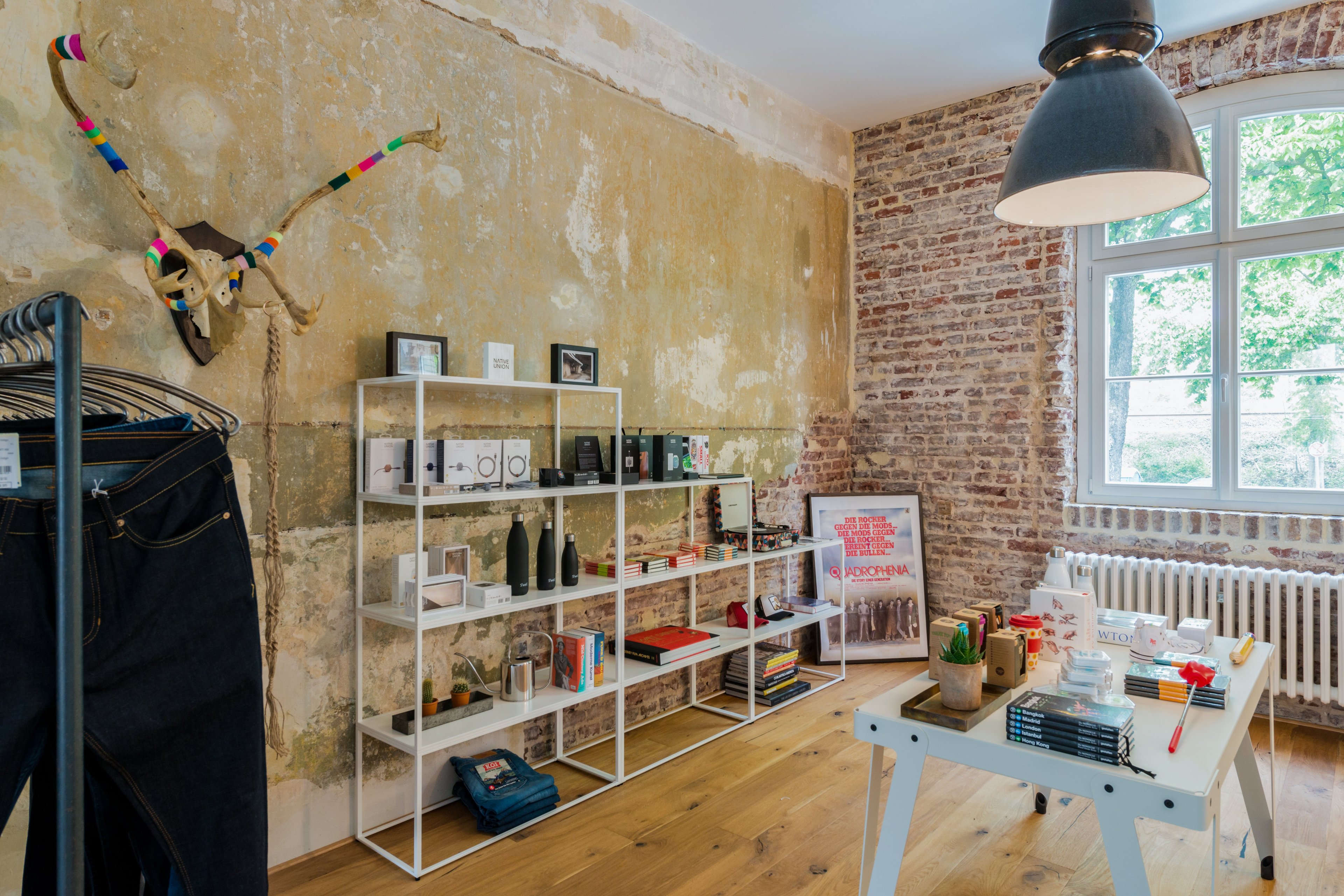 Auf einer Fläche von ca. 1100 qm, die sich auf vier Etagen eines ehemaligen Garnisonslazaretts erstreckt, sollte sowohl eine gestalterisch anspruchsvolle und funktionale Arbeitsumgebung für die Mitarbeiter als auch eine perfekte Wareninszenierung für Geschäftskunden der Agentur entstehen.