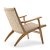 Der CH25 Loungesessel aus dem Jahr 1950 war eines der ersten von Hans J. Wegner für den Hersteller Carl Hansen & Søn entworfenen Möbel. Die konisch zulaufenden Beine und die über den Vorderbeinen schwebende Sitzfläche verleihen dem Designklassiker ausgesprochene Leichtigkeit. Das Papiergeflecht des zwanglos eleganten Sessels besteht dabei aus rund 300 Metern Papierkordel, deren Herstellung ca. 8 bis 10 Stunden in Anspruch nimmt. Neben dem CH25 Sessel entstanden in Zusammenarbeit von Wegner und Carl Hansen & Søn unzählige Objekte, darunter viele Designikonen wie etwa der Shell Chair oder der Wishbone Chair.
