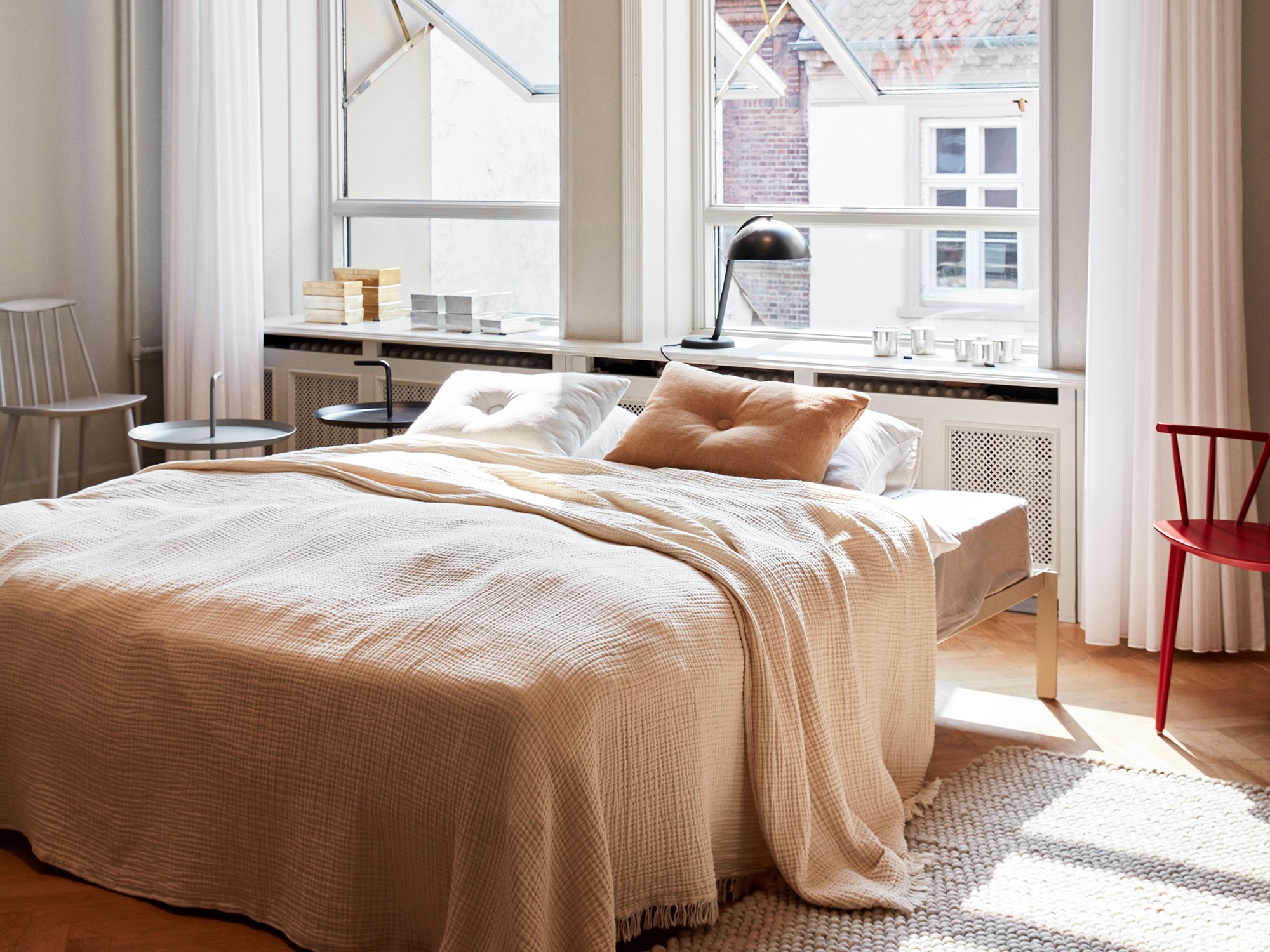 Die Dot Kissen des dänischen Herstellers HAY hübschen jede Sitzgelegenheit auf und bieten durch die Vielzahl an Stoffqualitäten und Farben für jeden Typ das passende Kissen. Highlight und Namensgeber der Dot Kissen sind zweifelsohne die Knöpfe. Die Vorderseite jedes Kissens ist mit einem farbgleichen Knopf bestückt und bringt so Ruhe in das Arrangement. Der Knopf auf der Rückseite hingegen setzt in Kontrastfarbe ein punktuelles Highlight. 2015 nahm HAY neue Bezugsmaterialien und -farben in das Dot-Cushion-Sortiment auf, welche aktuelle Trends widerspiegeln und hier in einem Produkt zusammengefasst sind.