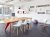 ...Dieses besteht aus drei Vitra RAR Schaukelstühlen, einer George Nelson Eye Clock, einem White Shell Beistelltisch von Sallvatore Indriolo für Zanotta und einer ganzen Reihe Moormann Möbel, darunter drei Kleine Lehner und eine Pin Coat Garderobe...