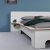 Material | Gestell: Birken-Multiplexplatten, Melaminharzbeschichtung weiß Kanten: naturbelassene Birken-Multiplexplatten, geölt Lattenrost: starrer Massivholzrahmen Matratze: 7-Zonen-Kaltschaummatratze Matratzenbezug: Frottee (75% Baumwolle, 25% Polyester) mit hochwertiger Markenhohlfaser (100% Polyester) in Mehrzonensteppung auf der Ober- und Unterseite; beidseitig unterlegt mit Polypropylenvlies |